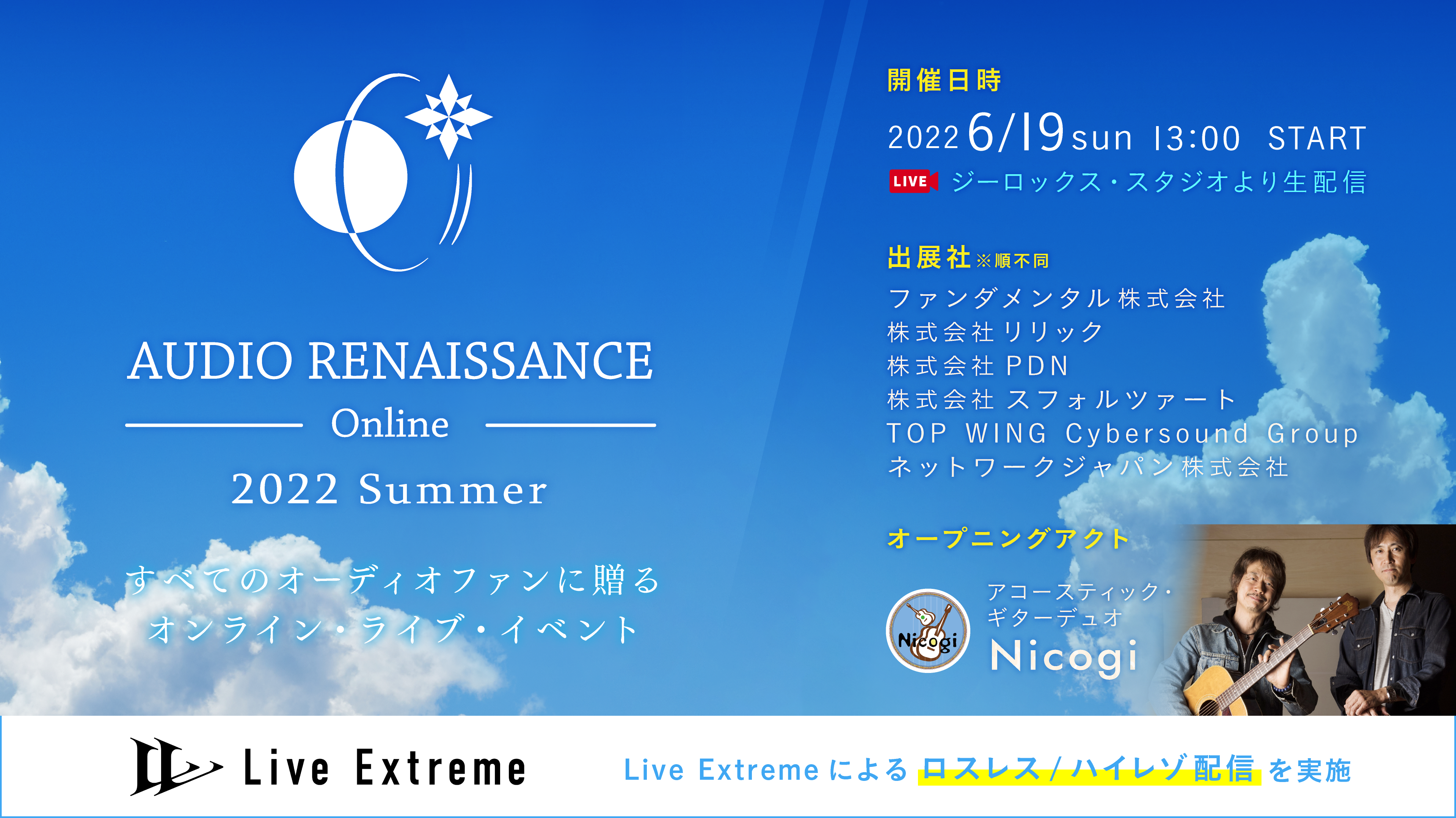 Audio Renaissance Online 2022 Summerは、オーディオファンのためのオンライン・ライブ・イベントです。