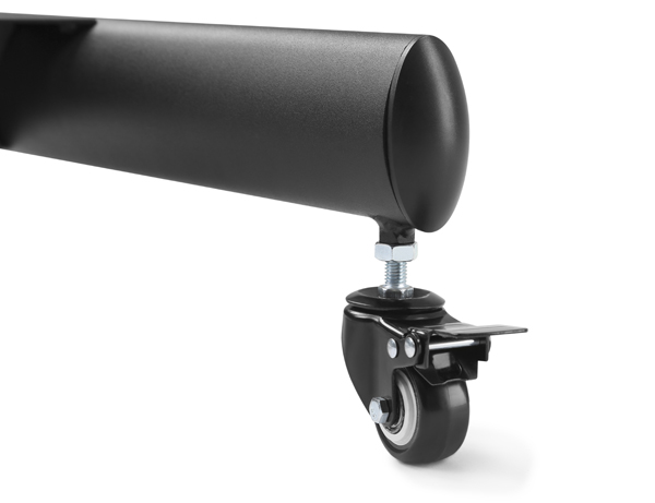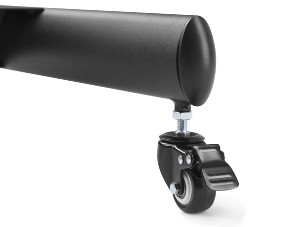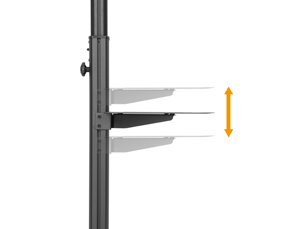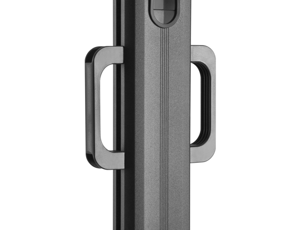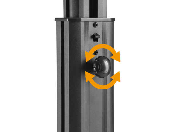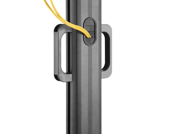 アルミ支柱はケーブル類を整理出来るケーブルマネジメントと高さ調節回転ノブロック採用