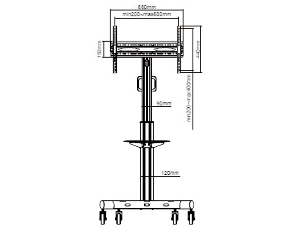 床面からVESAマウントセンターまでの寸法は1,130~1,650mm(13段階調節)