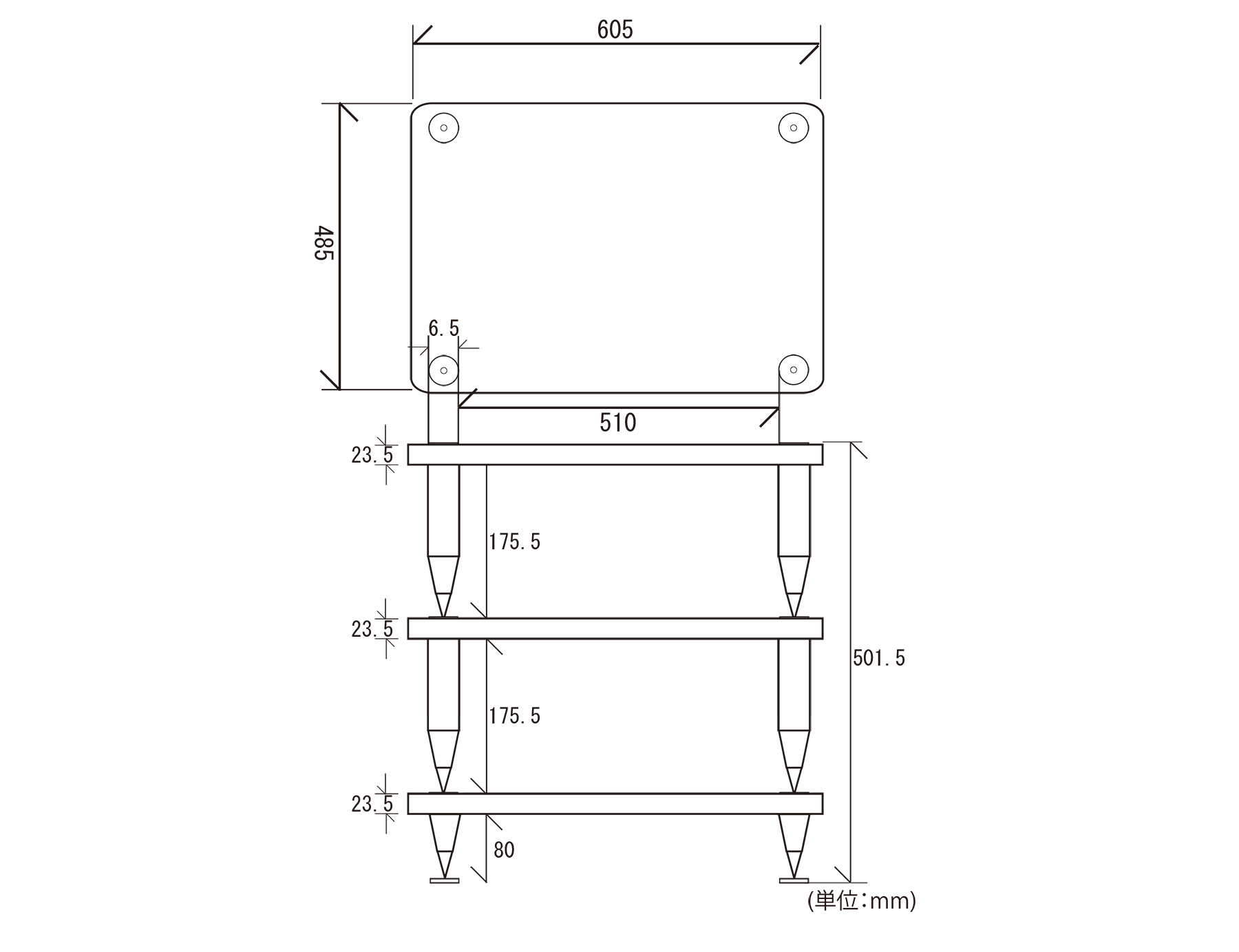 支柱は105mm、50mm、38mmを用意していますので、それを結合することによって、背の高い真空管アンプの設置も可能です。