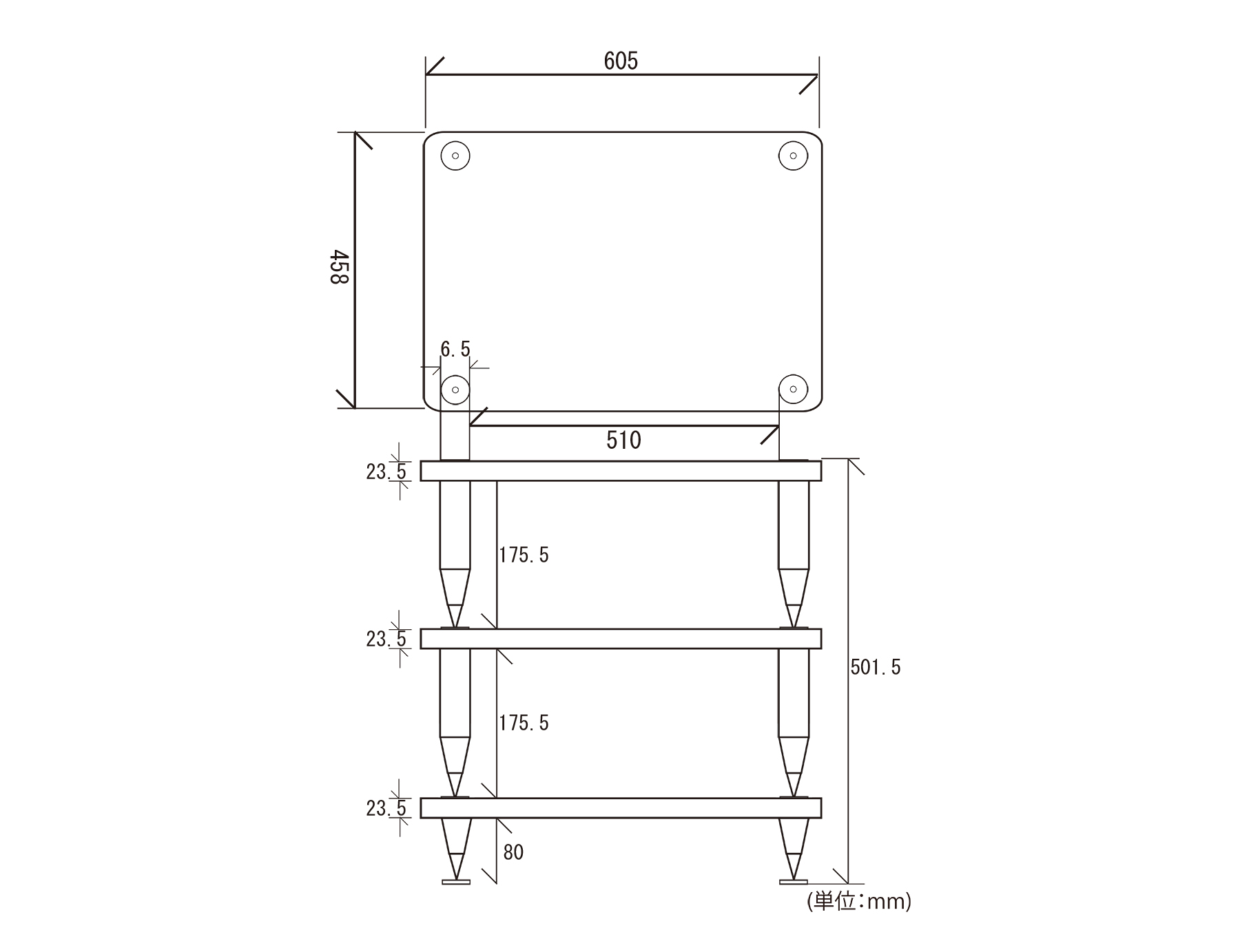 寸法 :W605 × D458 × H501.5mm